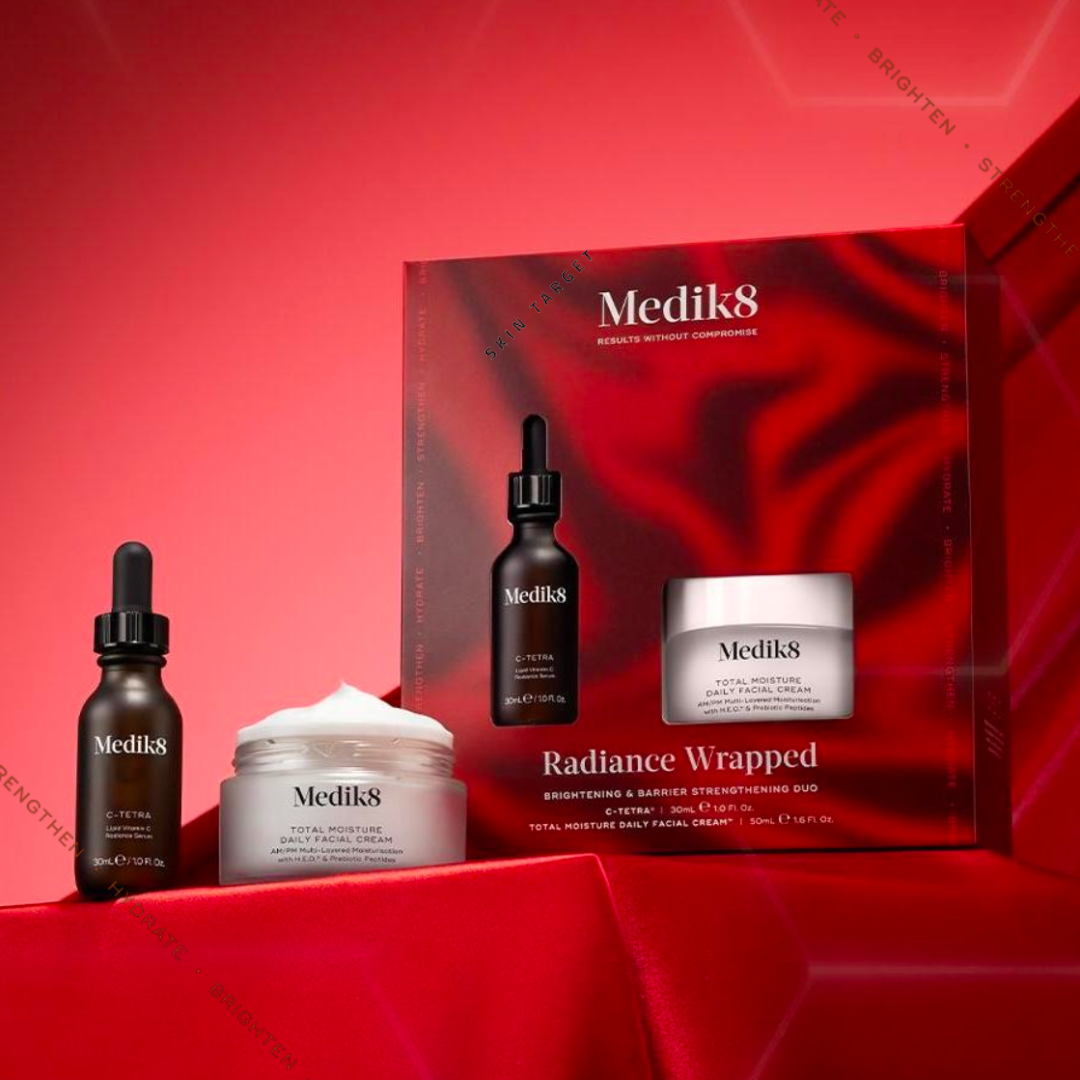 Odkryj sekret widocznie jaśniejszej i zdrowszej cery dzięki temu mocnemu duetowi. C-Tetra Vitamin C Serum dostarcza codzienną dawkę stabilizowanej witaminy C, pomaga chronić skórę przed czynnikami środowiskowymi i wzmacnia widoczny blask. Total Moisture Daily Facial Cream zatrzymuje nawilżenie nawet do 100 godzin, wzmacnia barierę ochronną skóry dzięki wielowarstwowej technologii nawilżającej i zapewnia długotrwały komfort. Idealny zestaw do przygotowania skóry na sezon świąteczny.